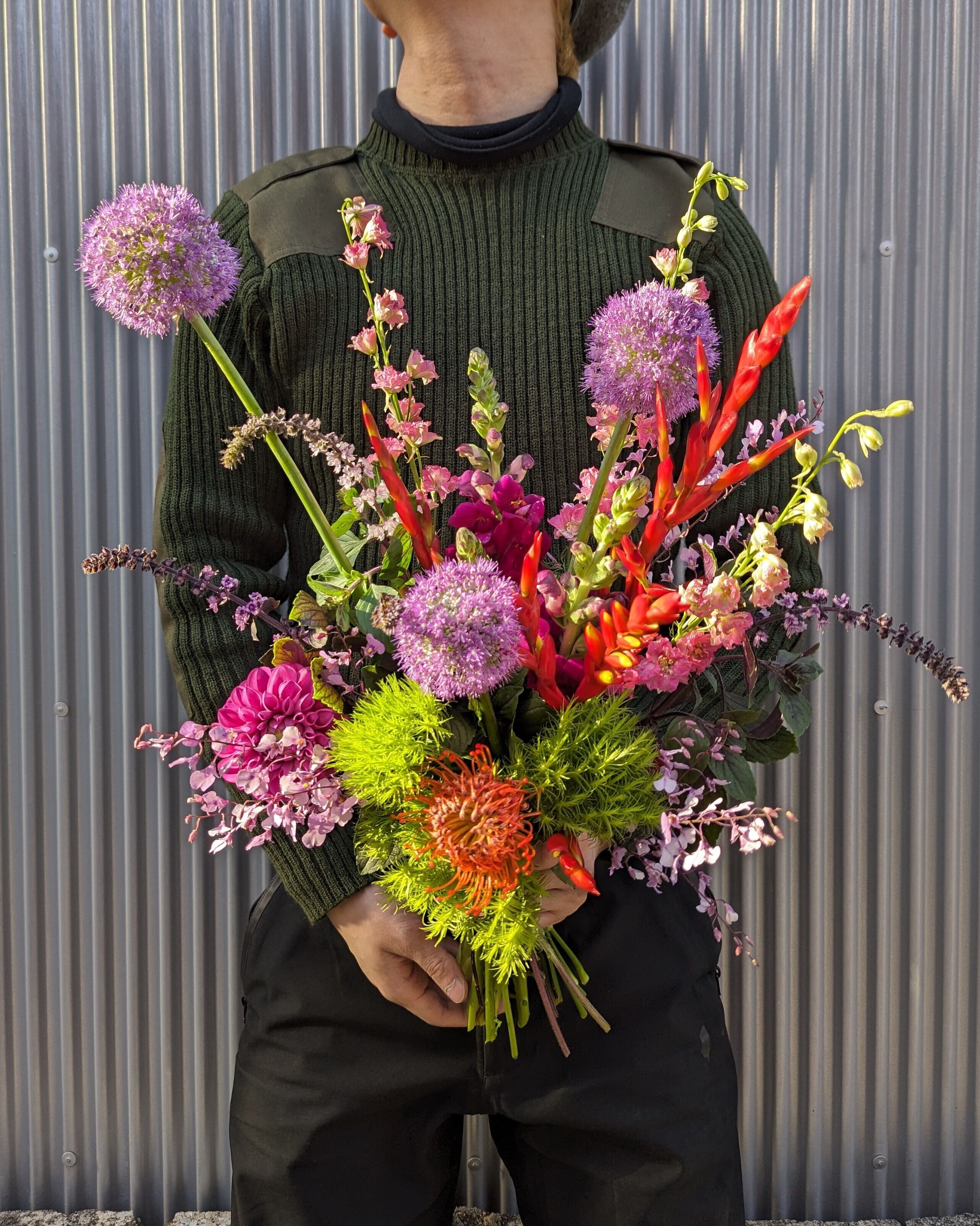 生命力、活力、力強く、そして何よりも植物の持つ美しさを感じ癒してくれるブーケを束ねます。